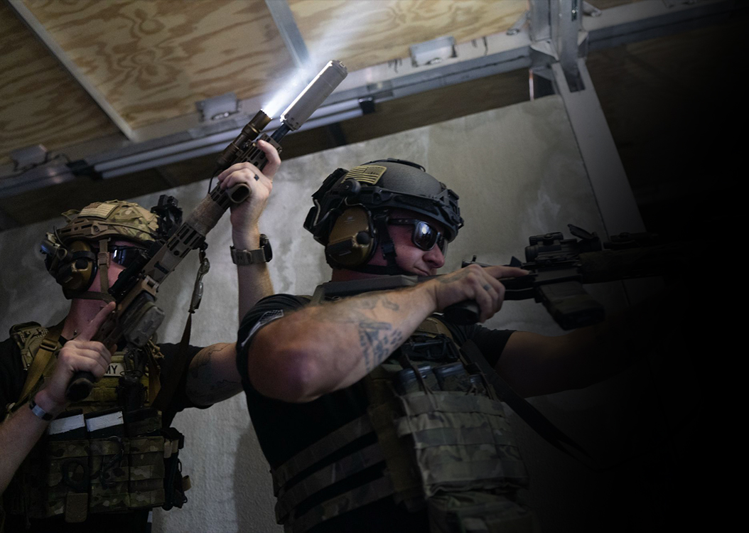 Our 5 Man Structure Clearing CQB course puts you into a realistic two story shoothouse for force on force, team based training. You will rotate through every position in the stack while working approaches, thresholds, room entries, hallways, stairs, low light and multiple threat scenarios. Using simunition equipped AR15s and full protective gear, this course mirrors basic SWAT style training and is open to responsible civilians, LE and military students.